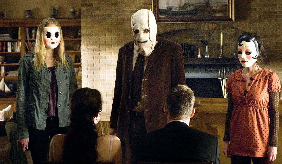 After returning from a wedding reception, a couple staying in an isolated vacation house receive a knock on the door in the mid-hours of the night. What ensues is a violent invasion by three strangers, their faces hidden behind masks. The couple find themselves in a violent struggle, in which they go beyond what either of them thought capable in order to survive.